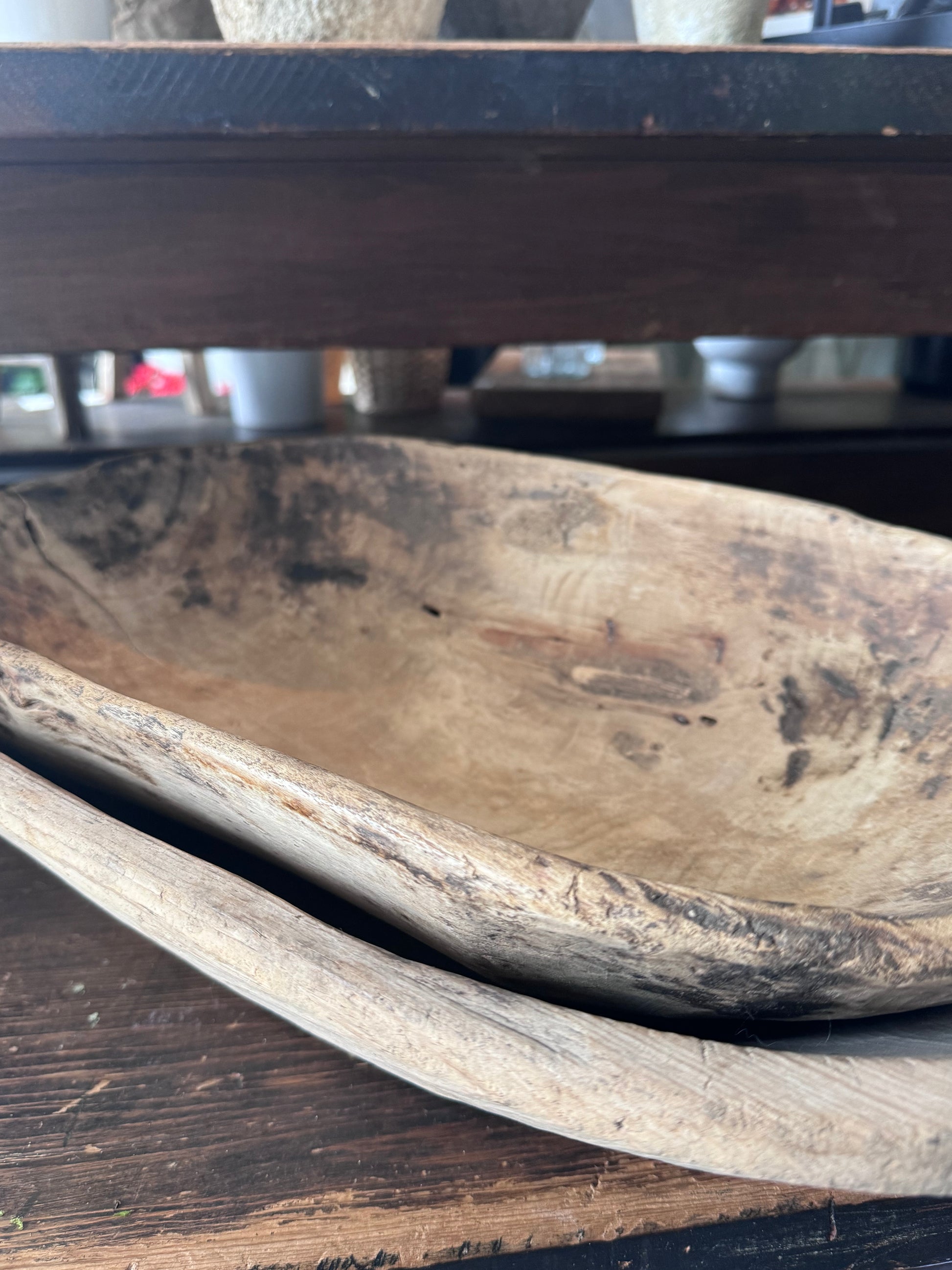 Our Lucie Vintage Dough Bowls are each one-of-a-kind. They were once used for rising bread dough and some still have remnants of flower & oil residue.